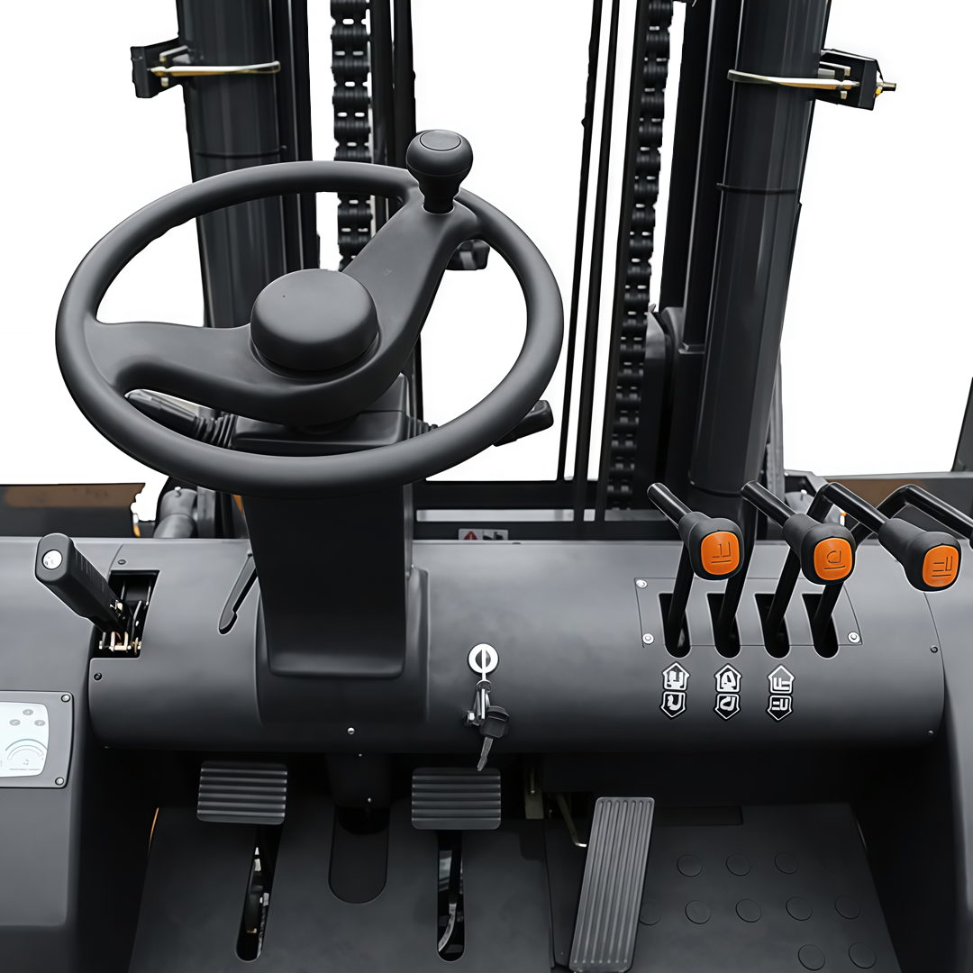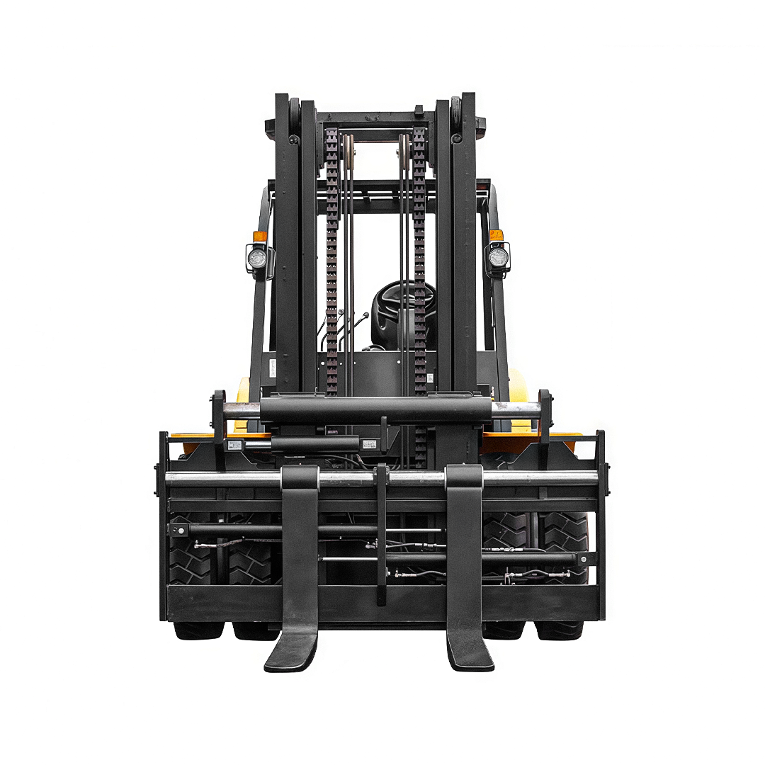 Inclui kit de iluminação (2 faróis dianteiros e 1 traseiro), dois retrovisores laterais, sistema de freio a tambor e 4ª via hidráulica. Capacidade nominal de 7.000 kg a 600 mm do centro de carga, garantindo robustez, estabilidade e alto desempenho em operações pesadas.